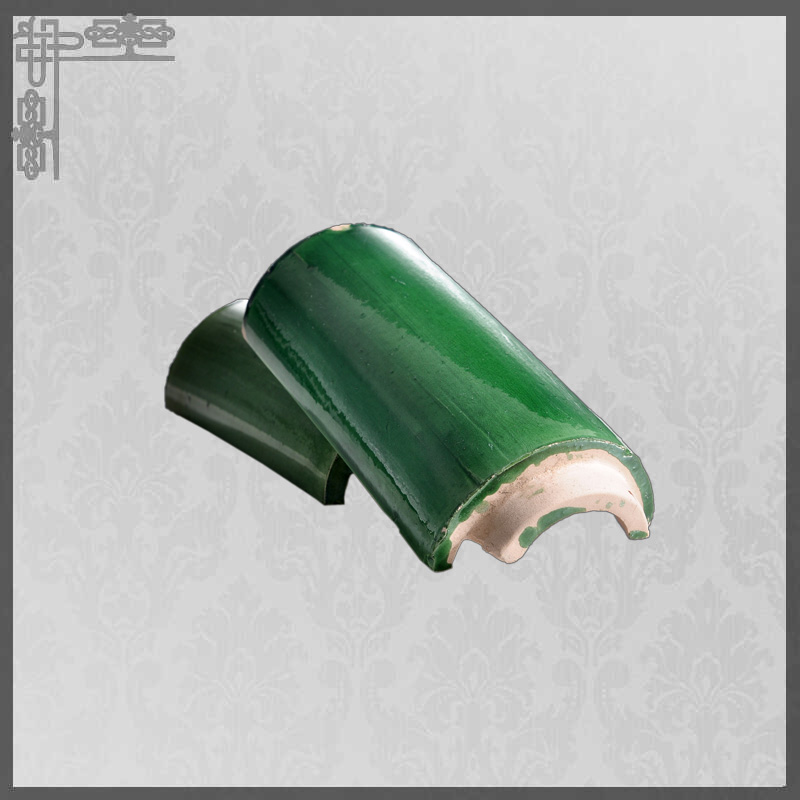 Now the glazed roof tiles are very common. The green glazed roof tiles are popular used for garden buildings